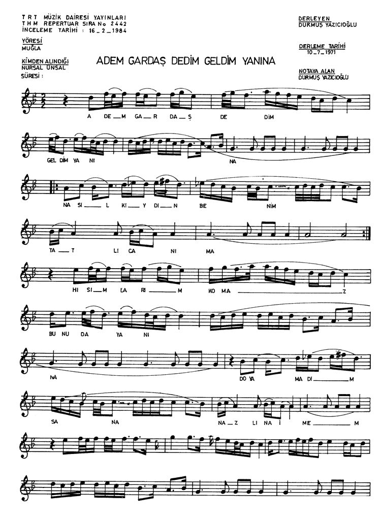 | Nota Bilgileri | Türkü Dinle | Adım adım Türkiye | Linkler |