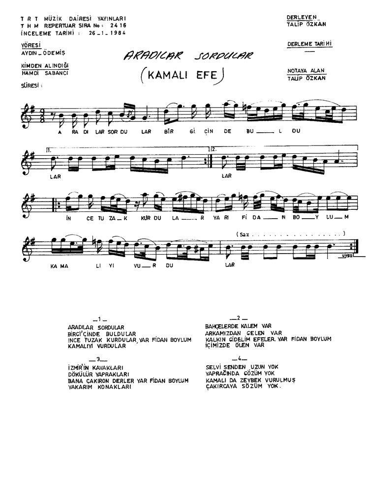 | Nota Bilgileri | Türkü Dinle | Adım adım Türkiye | Linkler |