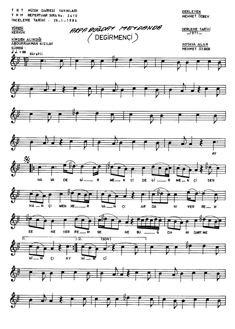 | Nota Bilgileri | Türkü Dinle | Adım adım Türkiye | Linkler |