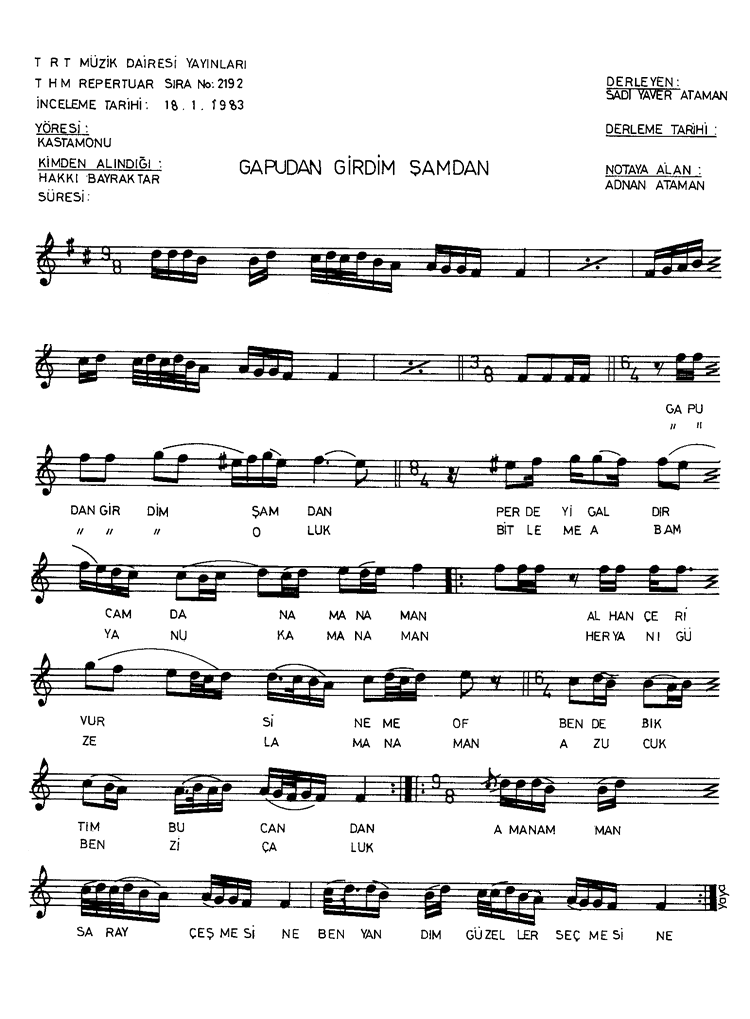| Nota Bilgileri | Türkü Dinle | Adım adım Türkiye | Linkler |