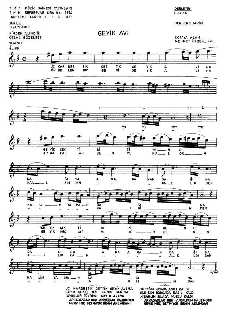 | Nota Bilgileri | Türkü Dinle | Adım adım Türkiye | Linkler |
