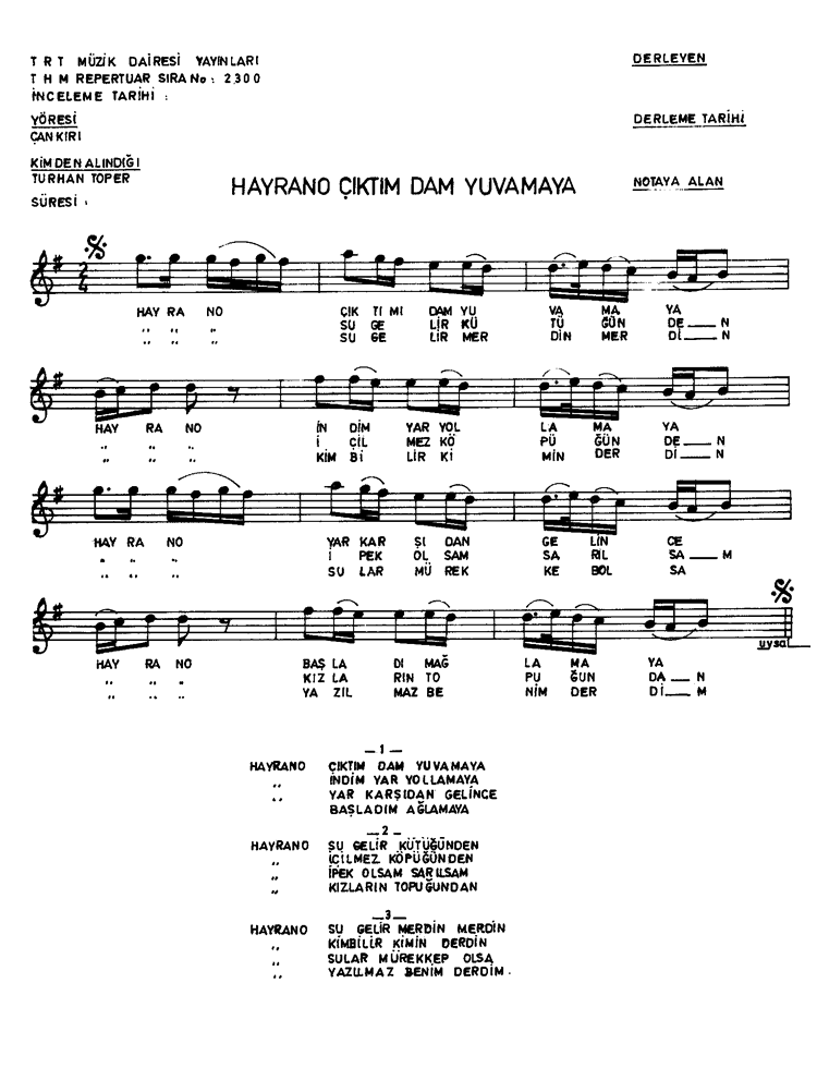 | Nota Bilgileri | Türkü Dinle | Adım adım Türkiye | Linkler |