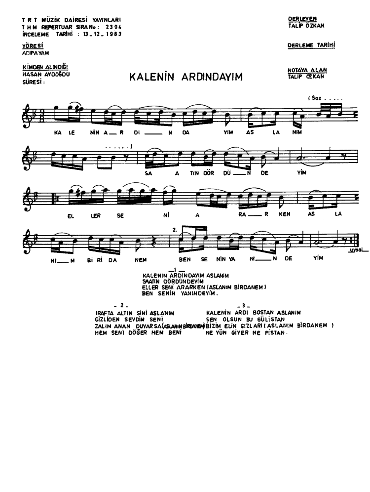 | Nota Bilgileri | Türkü Dinle | Adım adım Türkiye | Linkler |
