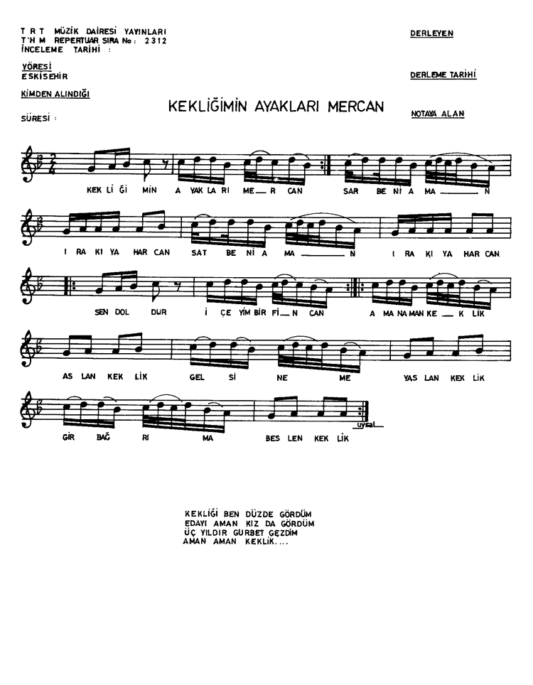 | Nota Bilgileri | Türkü Dinle | Adım adım Türkiye | Linkler |