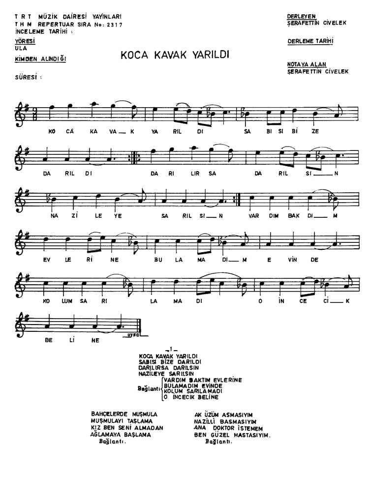| Nota Bilgileri | Türkü Dinle | Adım adım Türkiye | Linkler |