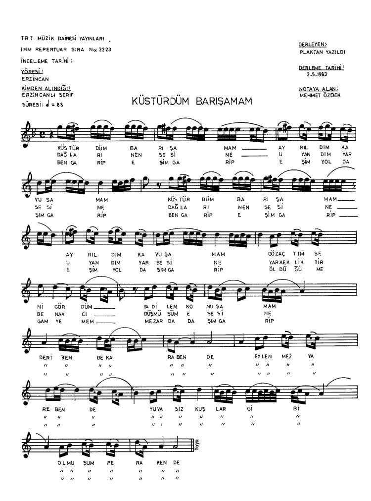 | Nota Bilgileri | Türkü Dinle | Adım adım Türkiye | Linkler |