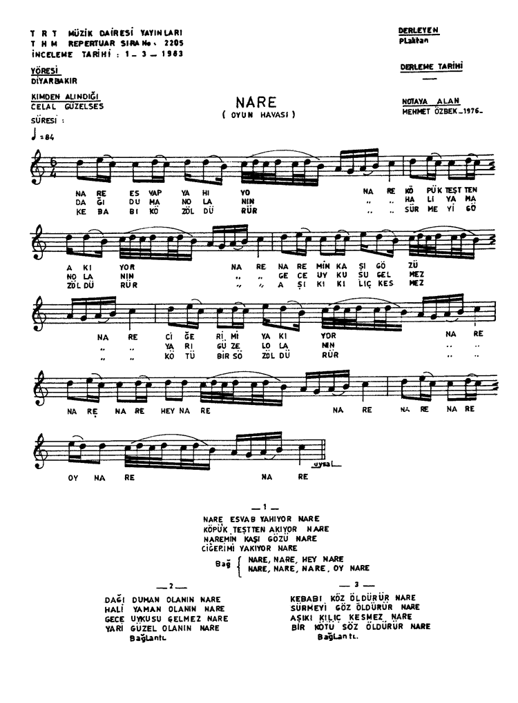 | Nota Bilgileri | Türkü Dinle | Adım adım Türkiye | Linkler |