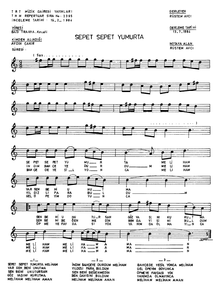 | Nota Bilgileri | Türkü Dinle | Adım adım Türkiye | Linkler |