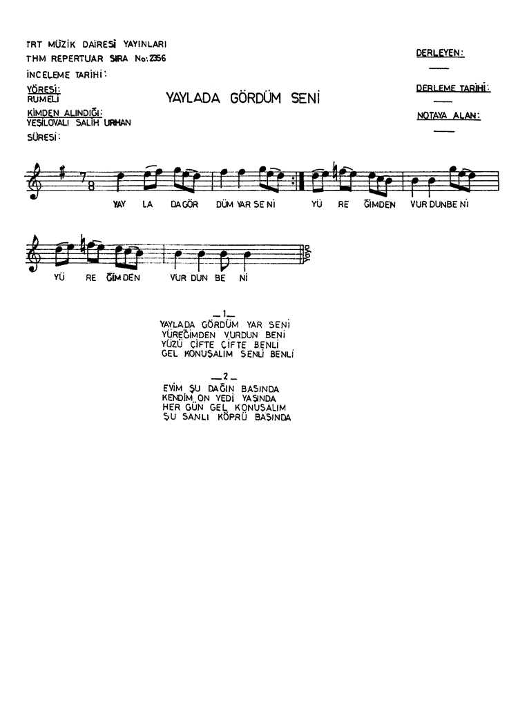 Yaylada Gördüm Seni |