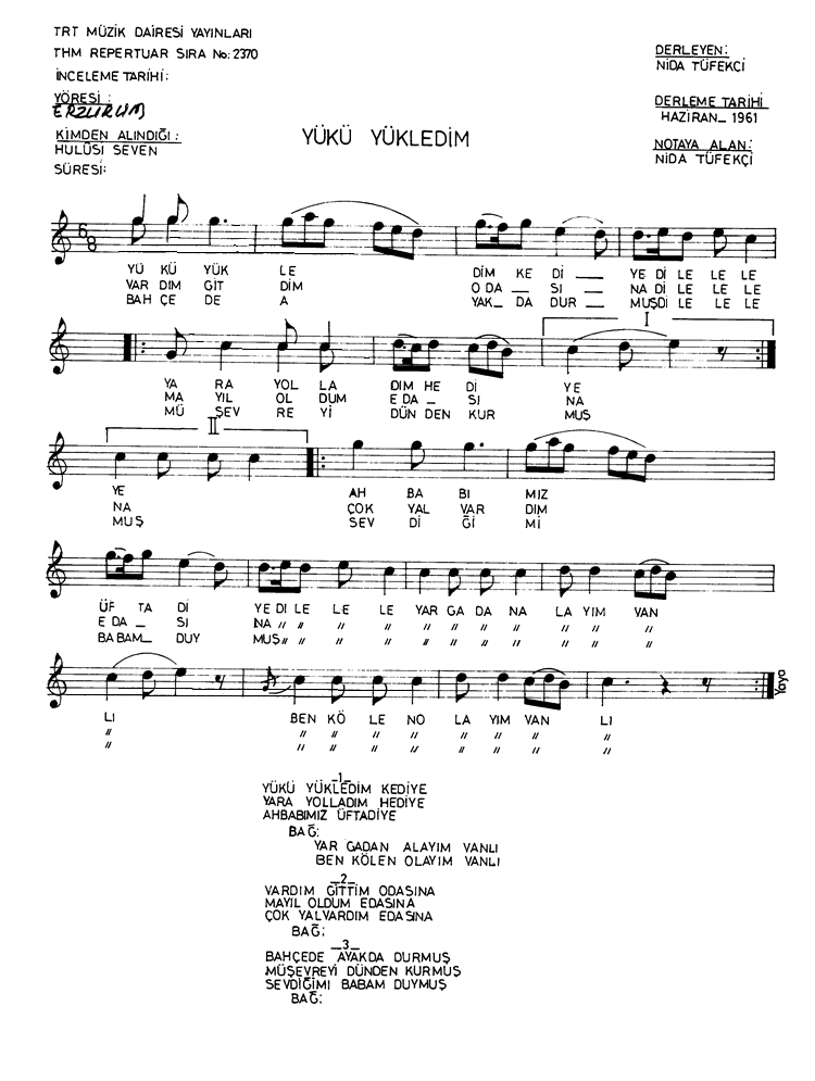 | Nota Bilgileri | Türkü Dinle | Adım adım Türkiye | Linkler |