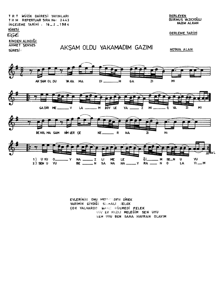 | Nota Bilgileri | Türkü Dinle | Adım adım Türkiye | Linkler |