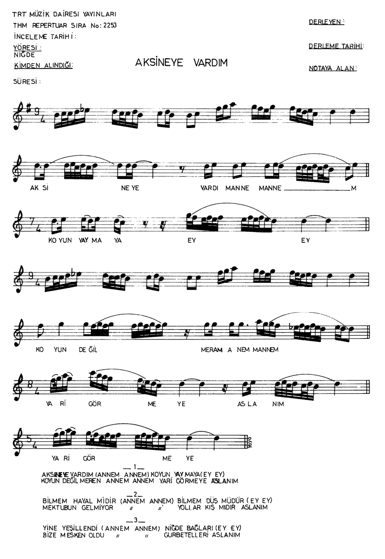 | Nota Bilgileri | Türkü Dinle | Adım adım Türkiye | Linkler |
