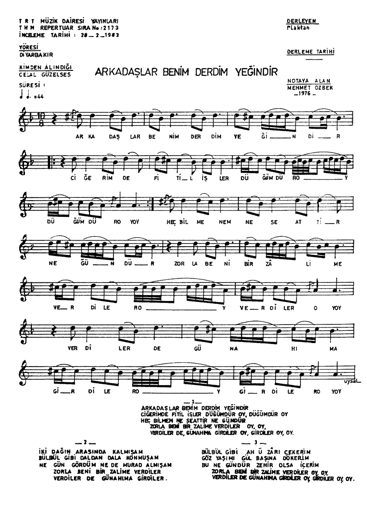 | Nota Bilgileri | Türkü Dinle | Adım adım Türkiye | Linkler |