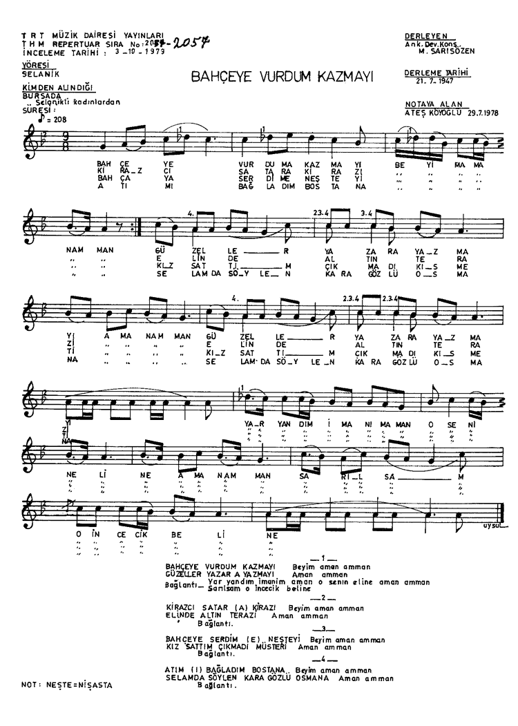 | Nota Bilgileri | Türkü Dinle | Adım adım Türkiye | Linkler |