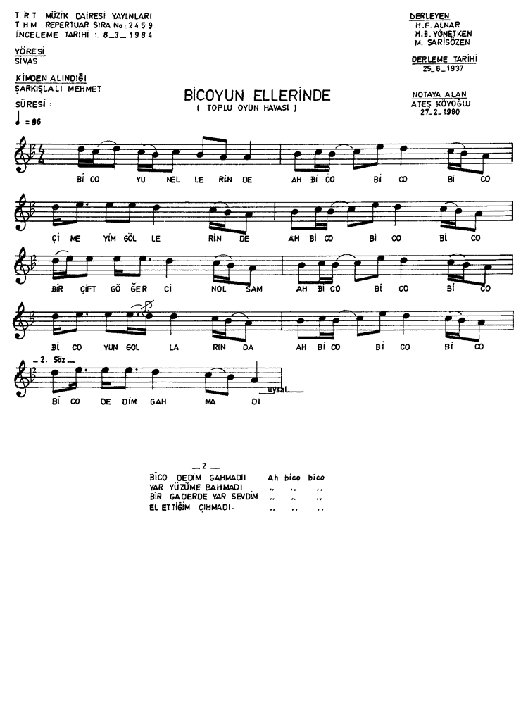 | Nota Bilgileri | Türkü Dinle | Adım adım Türkiye | Linkler |