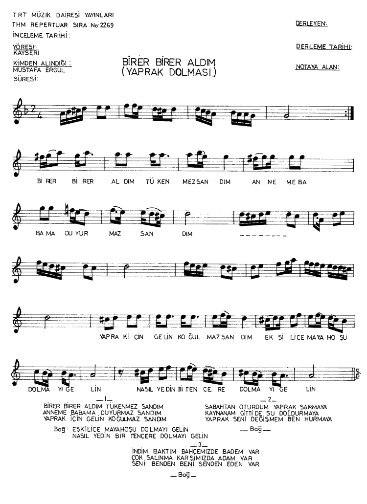 | Nota Bilgileri | Türkü Dinle | Adım adım Türkiye | Linkler |