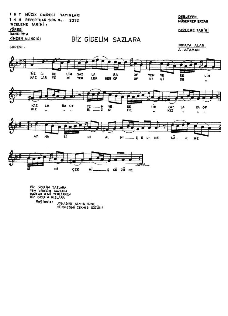| Nota Bilgileri | Türkü Dinle | Adım adım Türkiye | Linkler |
