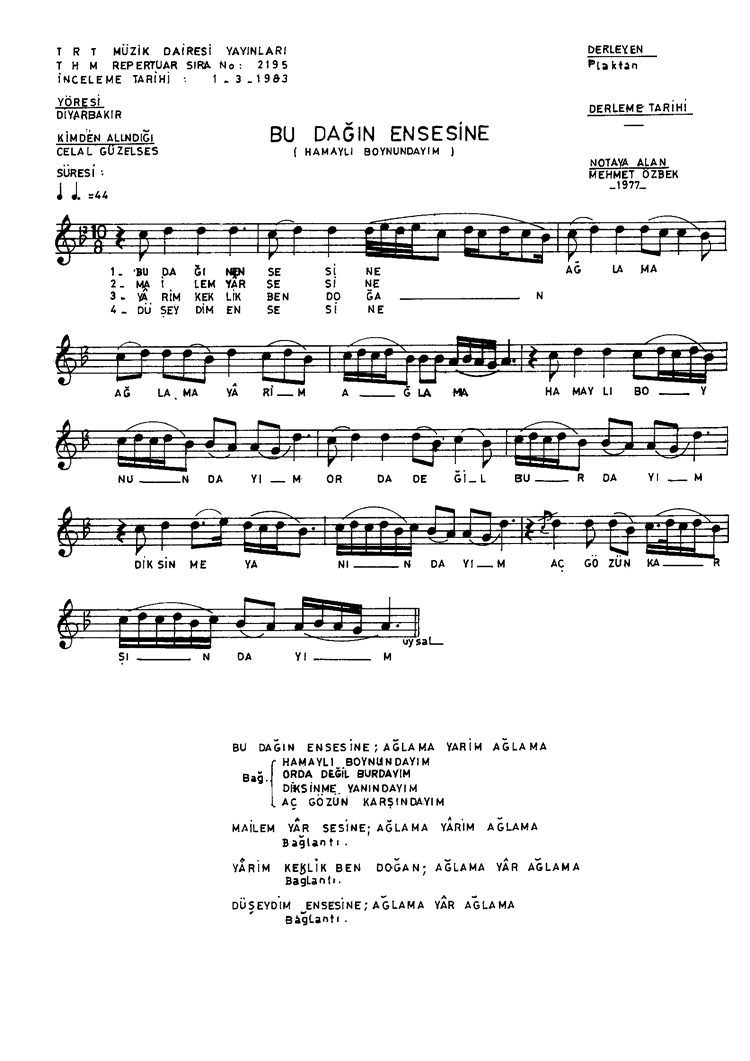 | Nota Bilgileri | Türkü Dinle | Adım adım Türkiye | Linkler |