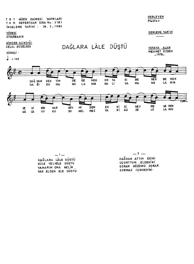 | Nota Bilgileri | Türkü Dinle | Adım adım Türkiye | Linkler |