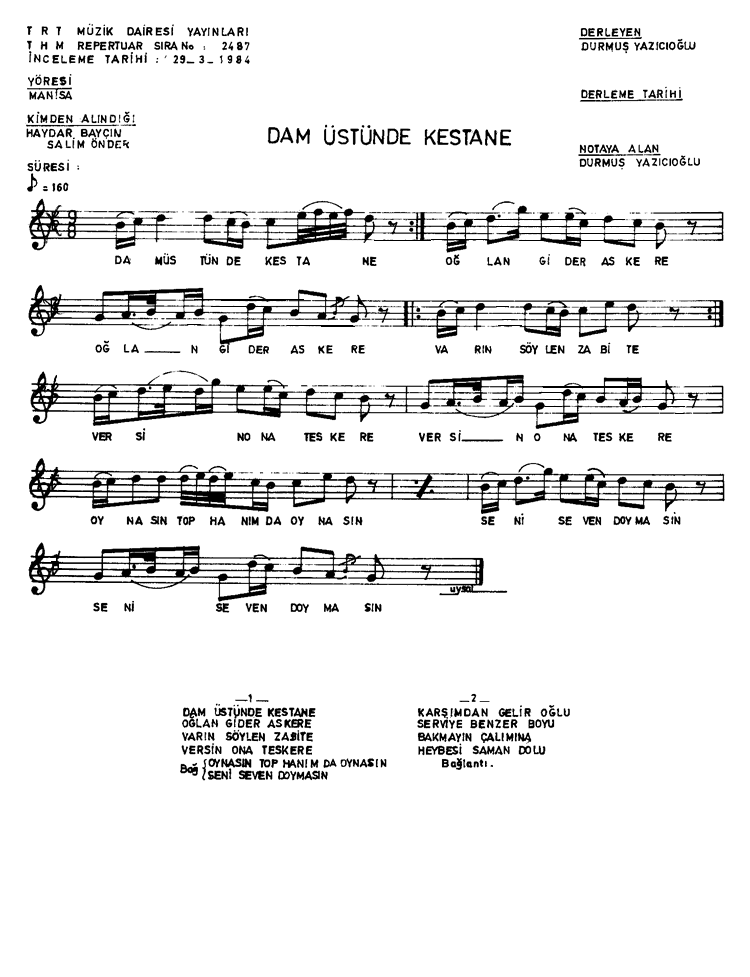 | Nota Bilgileri | Türkü Dinle | Adım adım Türkiye | Linkler |