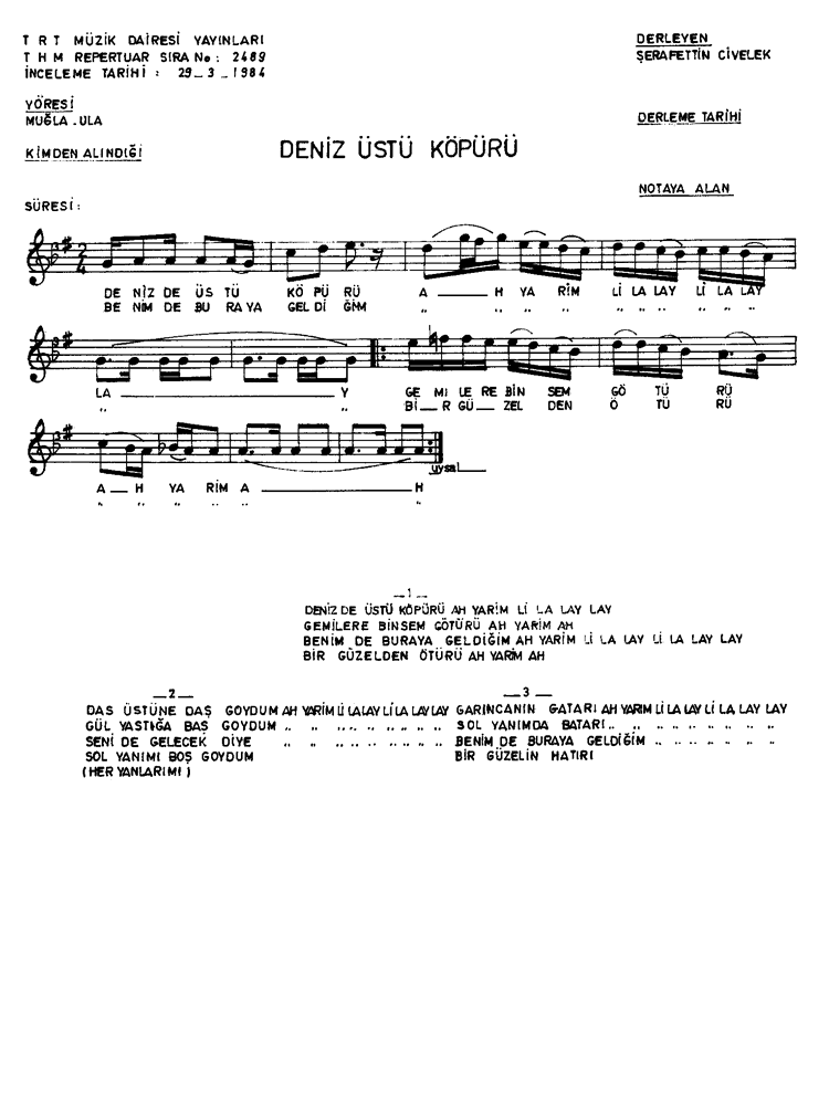 | Nota Bilgileri | Türkü Dinle | Adım adım Türkiye | Linkler |