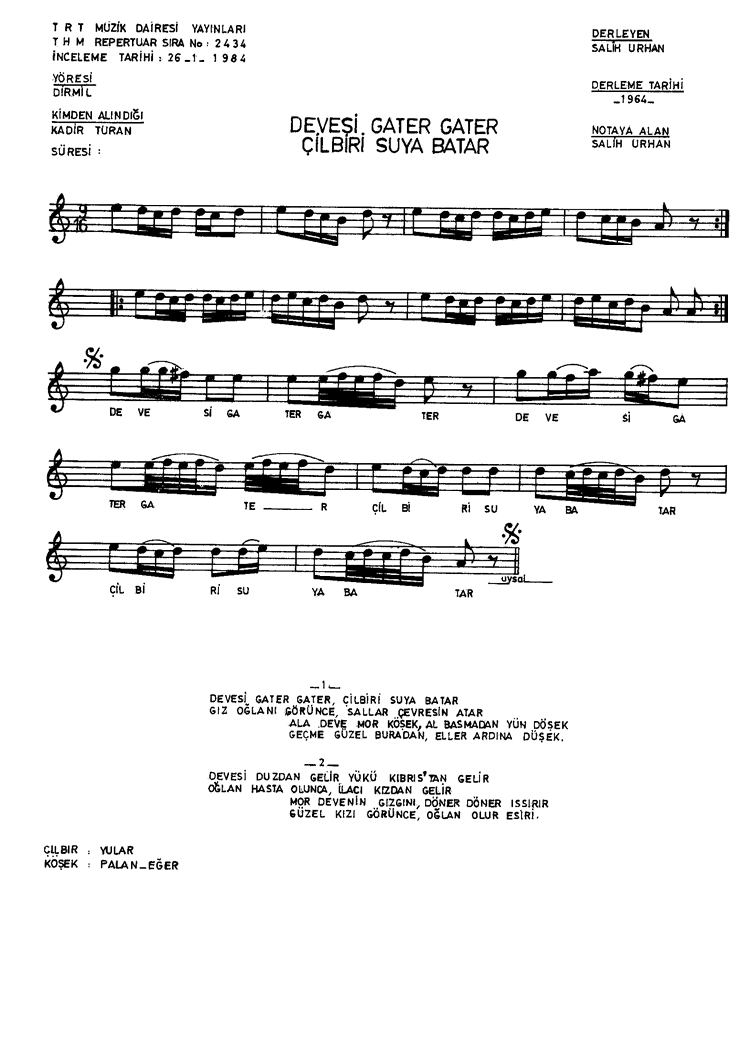 | Nota Bilgileri | Türkü Dinle | Adım adım Türkiye | Linkler |