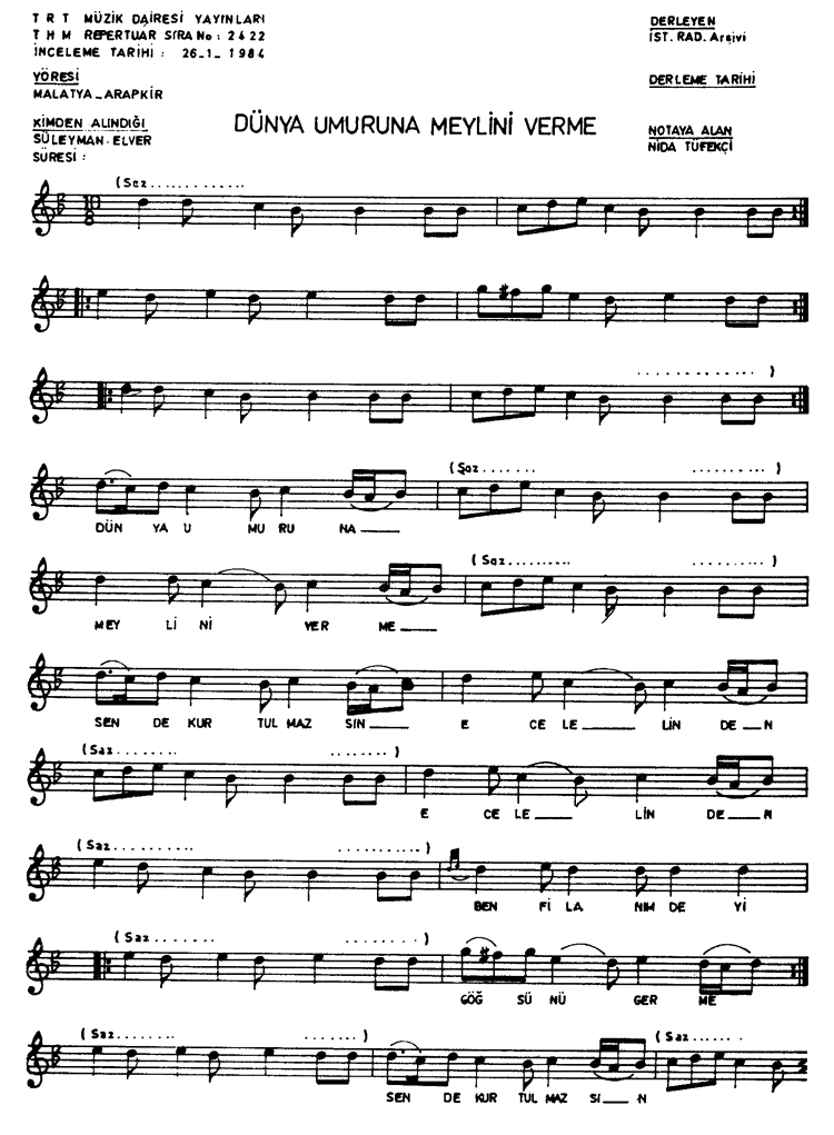 | Nota Bilgileri | Türkü Dinle | Adım adım Türkiye | Linkler |