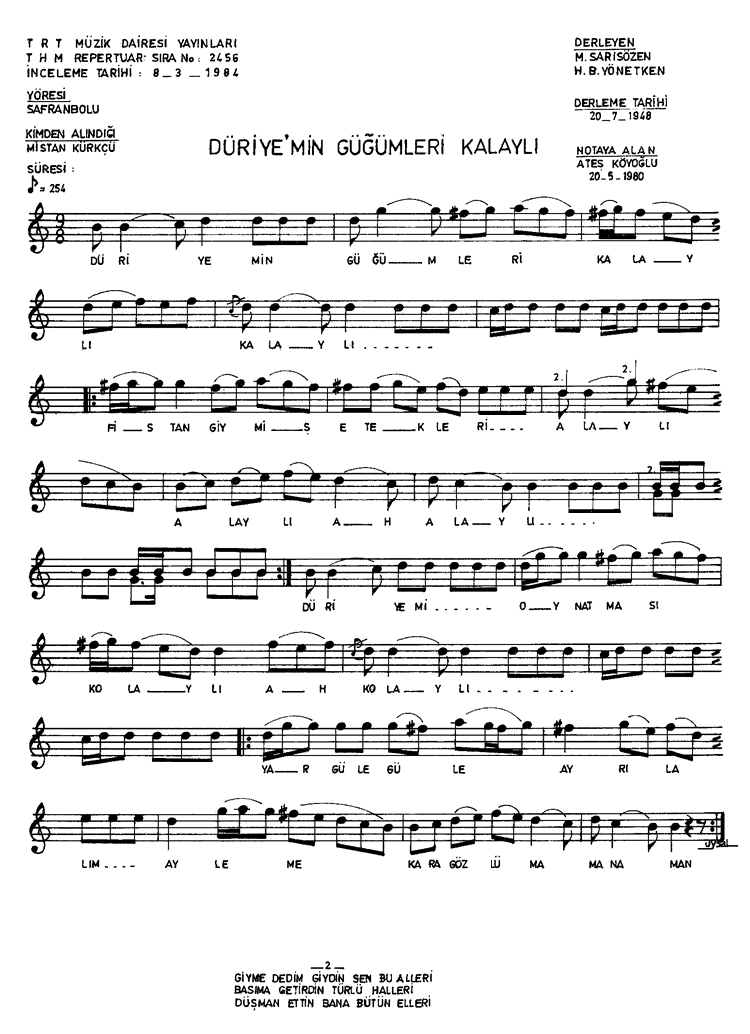 | Nota Bilgileri | Türkü Dinle | Adım adım Türkiye | Linkler |