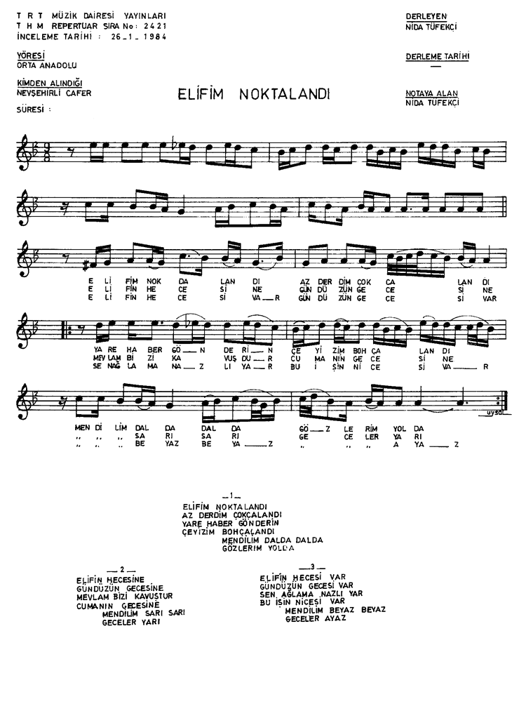 | Nota Bilgileri | Türkü Dinle | Adım adım Türkiye | Linkler |