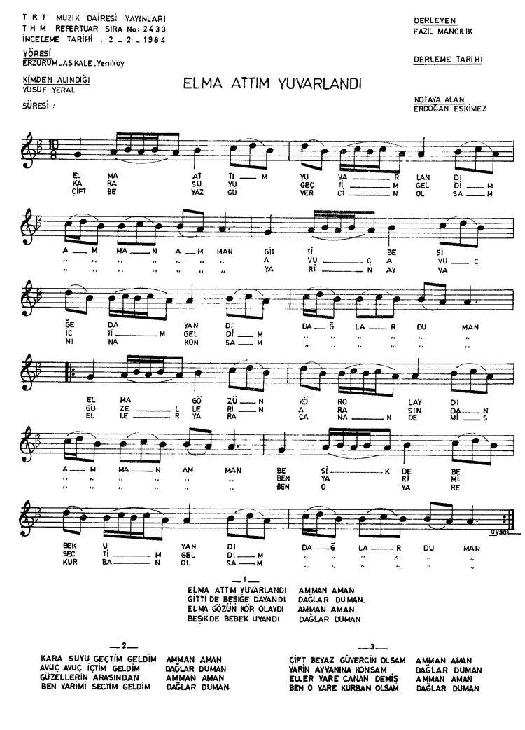 | Nota Bilgileri | Türkü Dinle | Adım adım Türkiye | Linkler |