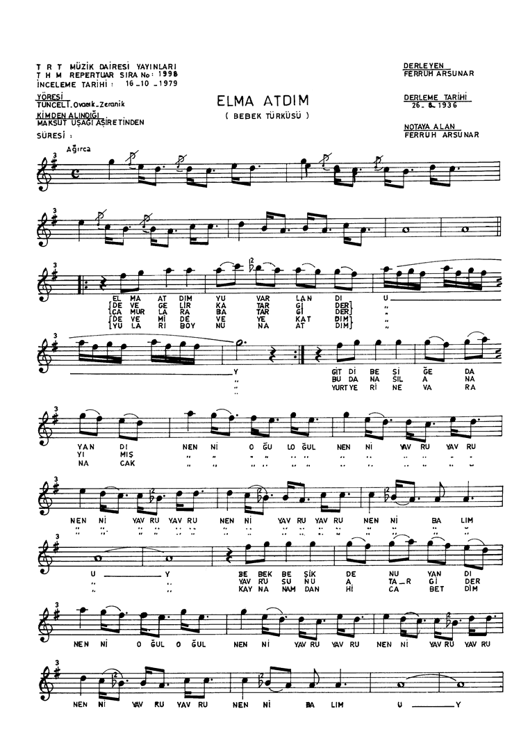 | Nota Bilgileri | Türkü Dinle | Adım adım Türkiye | Linkler |