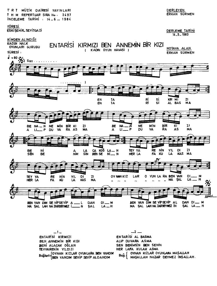 | Nota Bilgileri | Türkü Dinle | Adım adım Türkiye | Linkler |
