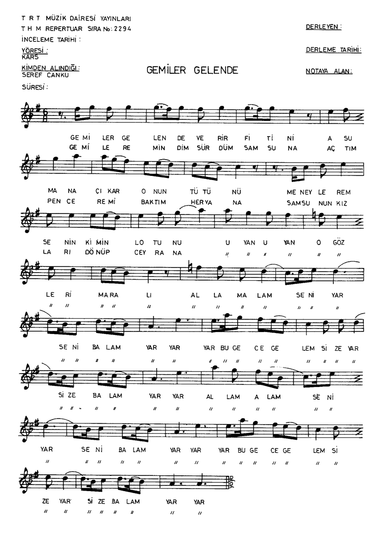 | Nota Bilgileri | Türkü Dinle | Adım adım Türkiye | Linkler |