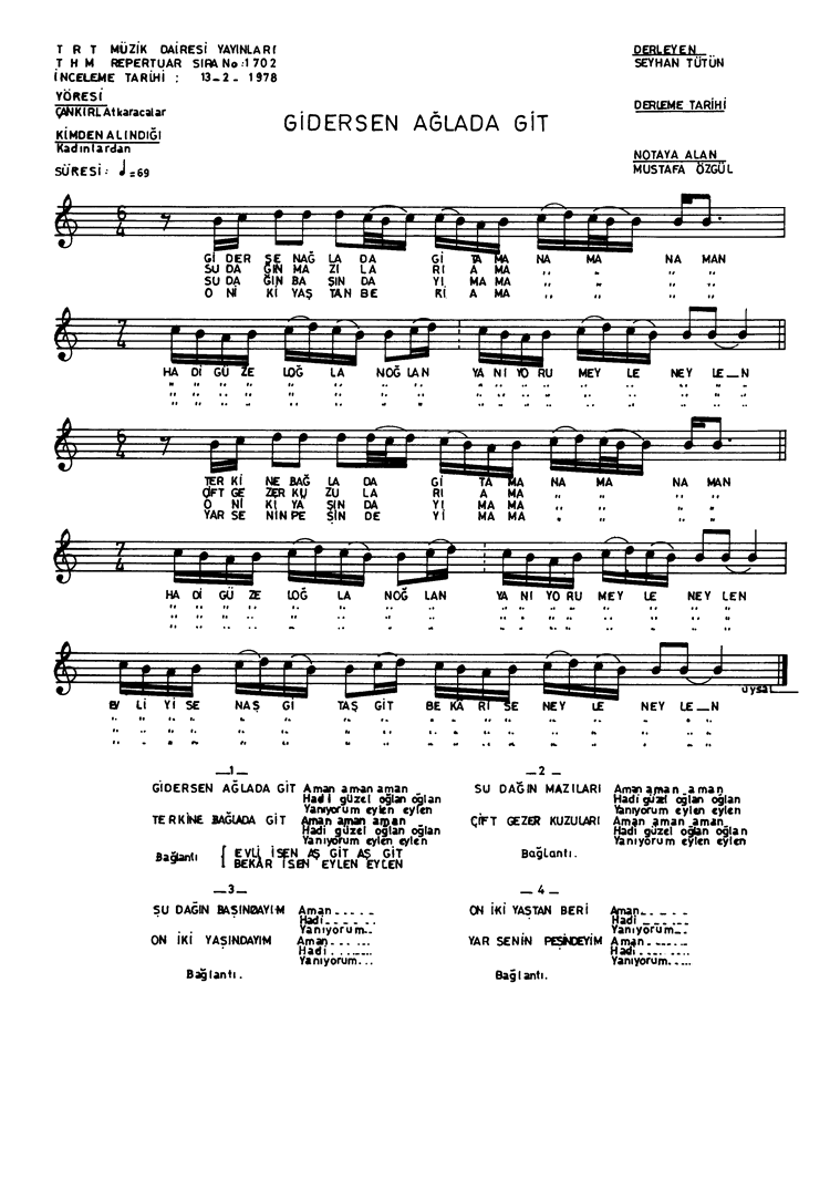 | Nota Bilgileri | Türkü Dinle | Adım adım Türkiye | Linkler |