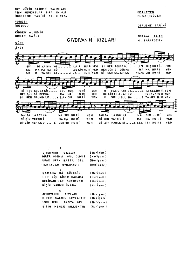 | Nota Bilgileri | Türkü Dinle | Adım adım Türkiye | Linkler |