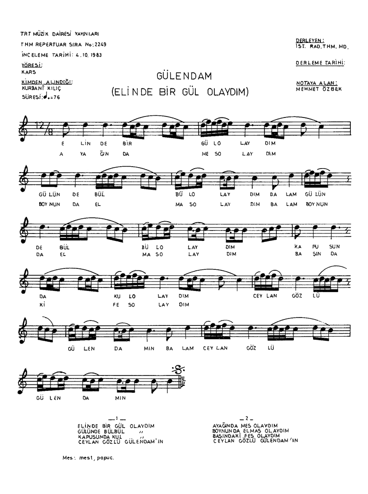 | Nota Bilgileri | Türkü Dinle | Adım adım Türkiye | Linkler |
