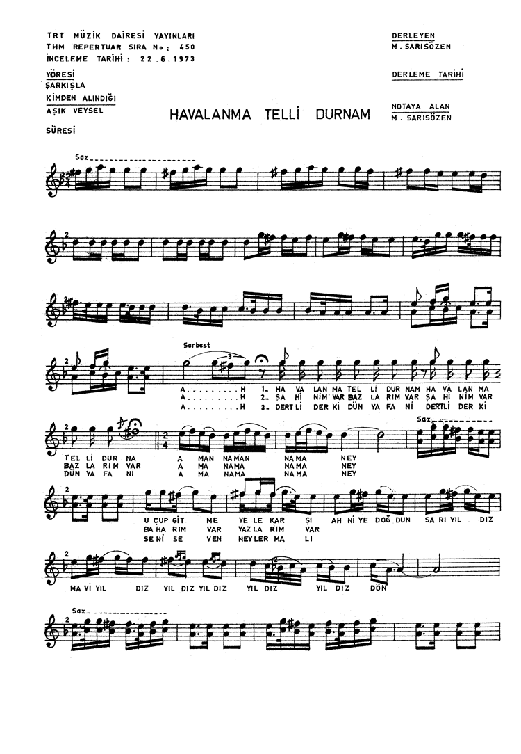 | Âşık Veysel Kimdir | Türkü Sözleri | Türkü Notaları | Ozanlarımız | Gönül verenler |