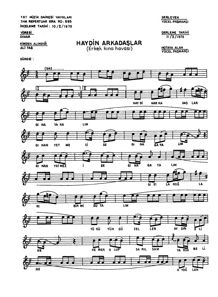 | Nota Bilgileri | Türkü Dinle | Adım adım Türkiye | Linkler |