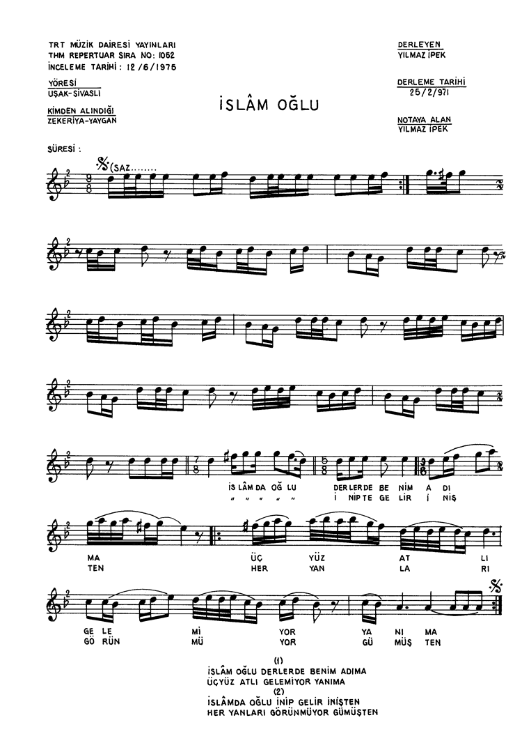 | Nota Bilgileri | Türkü Dinle | Adım adım Türkiye | Linkler |