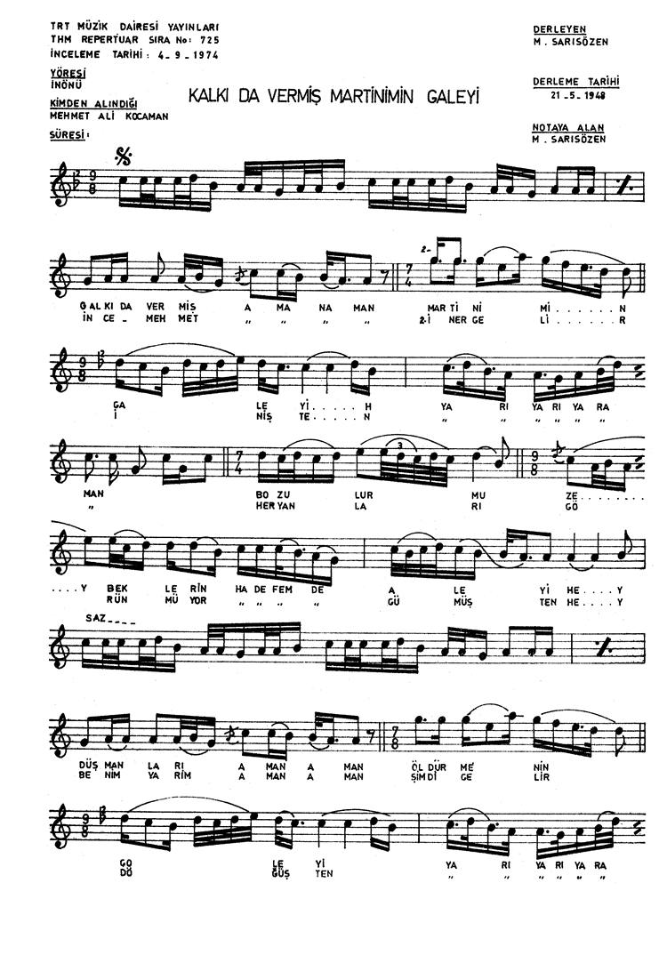 | Nota Bilgileri | Türkü Dinle | Adım adım Türkiye | Linkler |