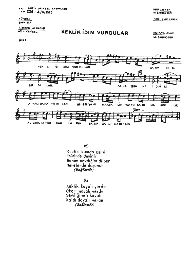 | Âşık Veysel Kimdir | Türkü Sözleri | Türkü Notaları | Ozanlarımız | Gönül verenler |