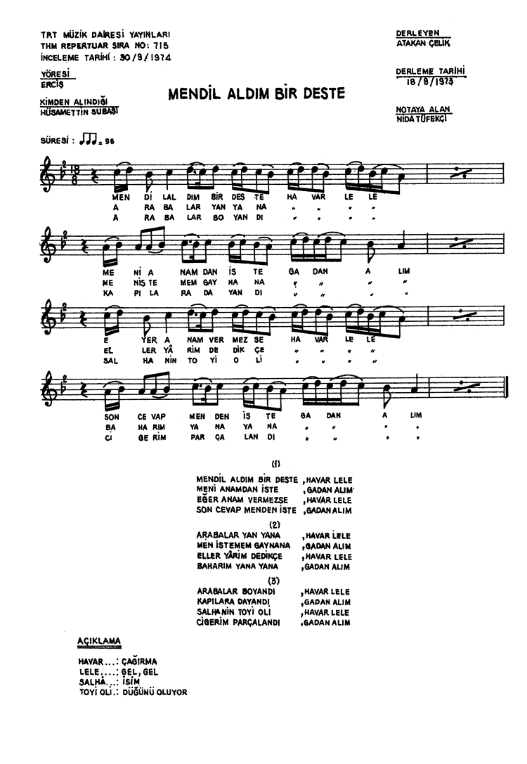 | Nota Bilgileri | Türkü Dinle | Adım adım Türkiye | Linkler |