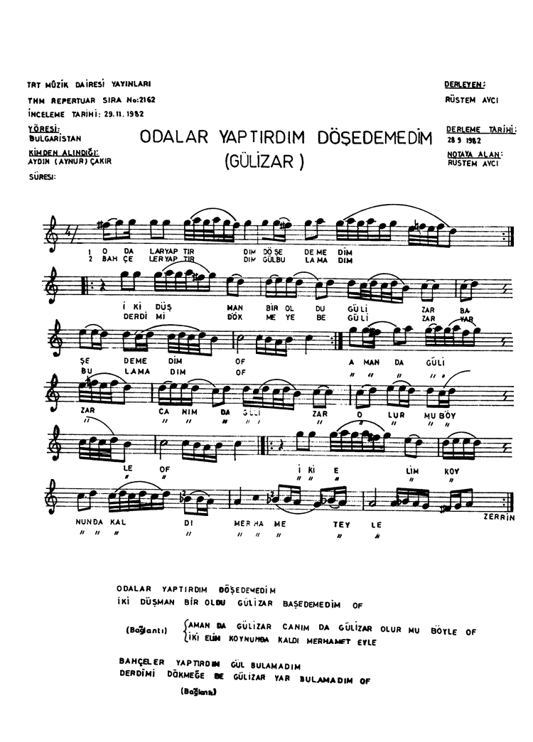 | Nota Bilgileri | Türkü Dinle | Adım adım Türkiye | Linkler |