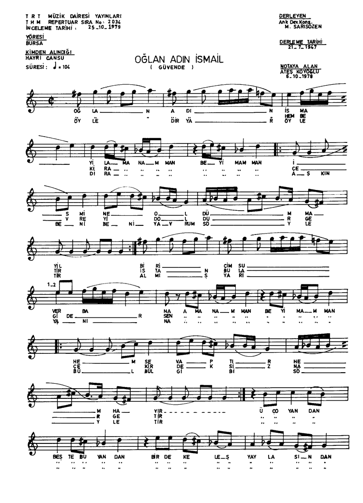 Nota Bilgileri | Türkü Dinle | Adım adım Türkiye | Linkler |