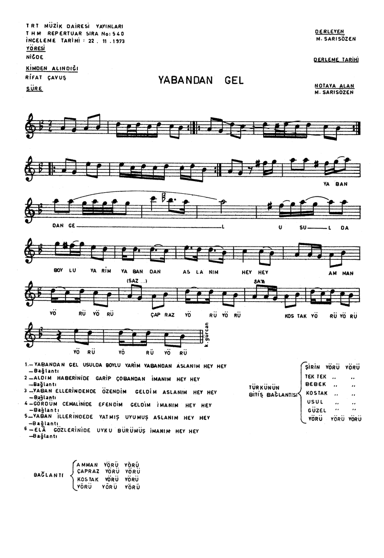 | Nota Bilgileri | Türkü Dinle | Adım adım Türkiye | Linkler |