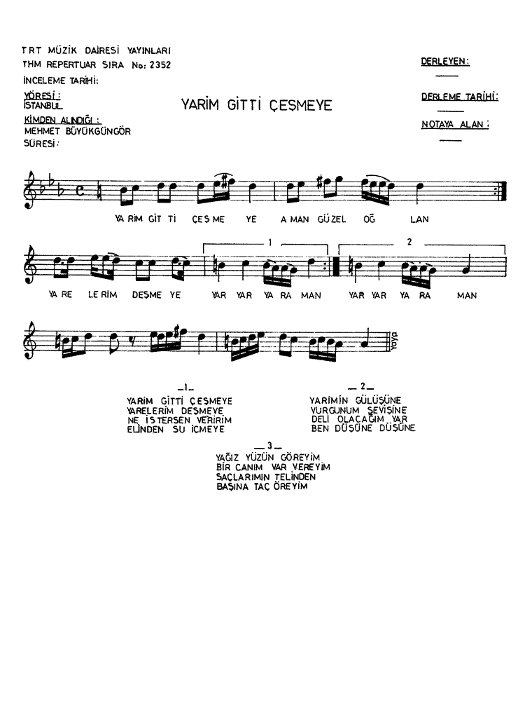 Yârim Gitti Çeşmeye |