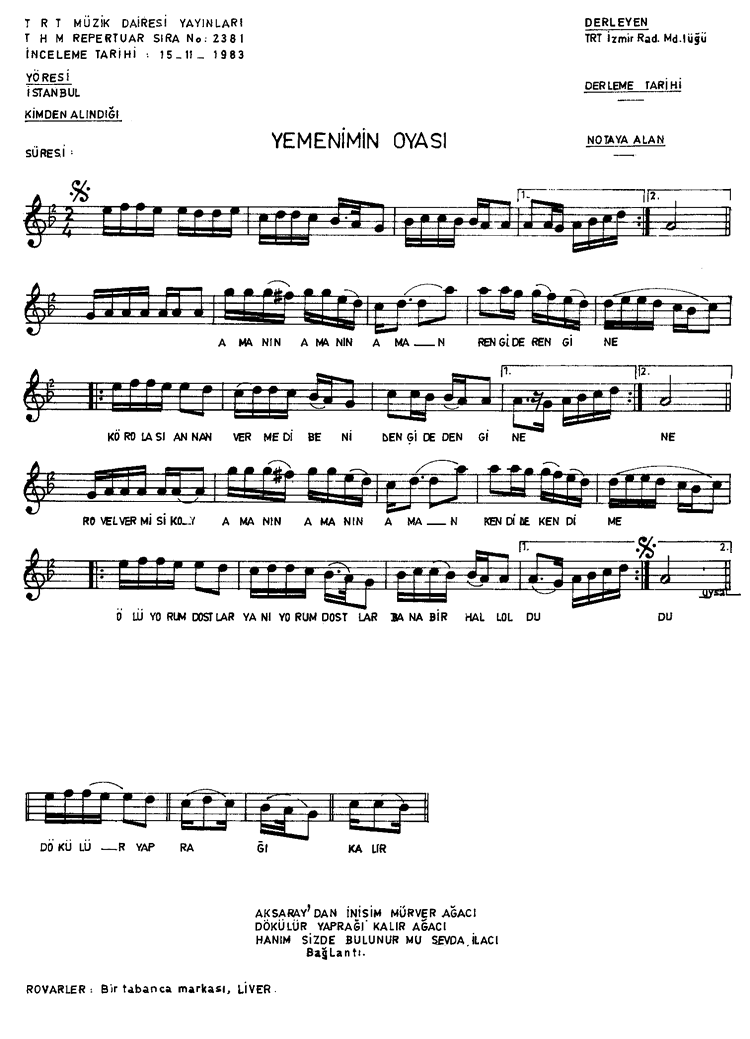 | Nota Bilgileri | Türkü Dinle | Adım adım Türkiye | Linkler |