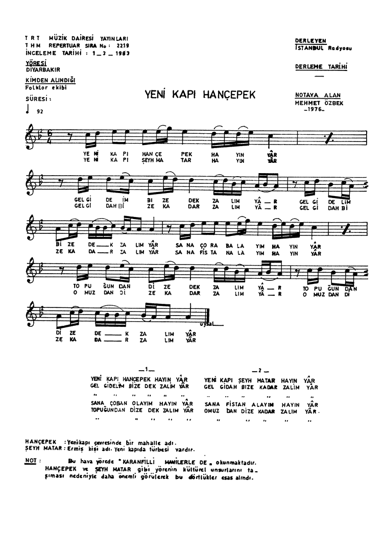 | Nota Bilgileri | Türkü Dinle | Adım adım Türkiye | Linkler |