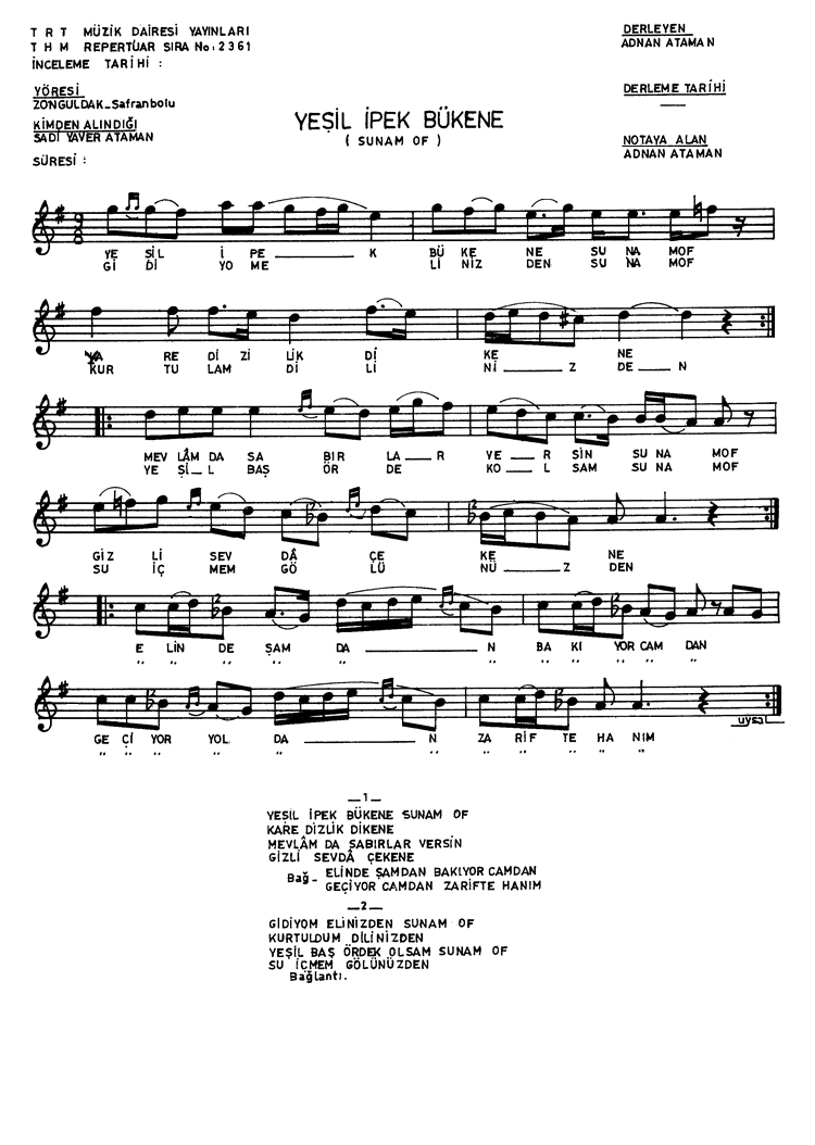 | Nota Bilgileri | Türkü Dinle | Adım adım Türkiye | Linkler |