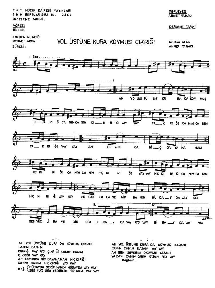 | Nota Bilgileri | Türkü Dinle | Adım adım Türkiye | Linkler |